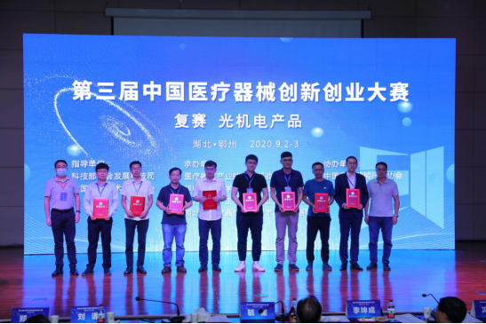 蔡夫鸿博士在第三届中国医疗器械创新创业大赛中,取得光机产品初创组三等奖。本次大赛由华中科技大学鄂州工业技术研究院启动,以“关注转化医学面向临床实际需求、强化技术创新与创新服务”为主题。