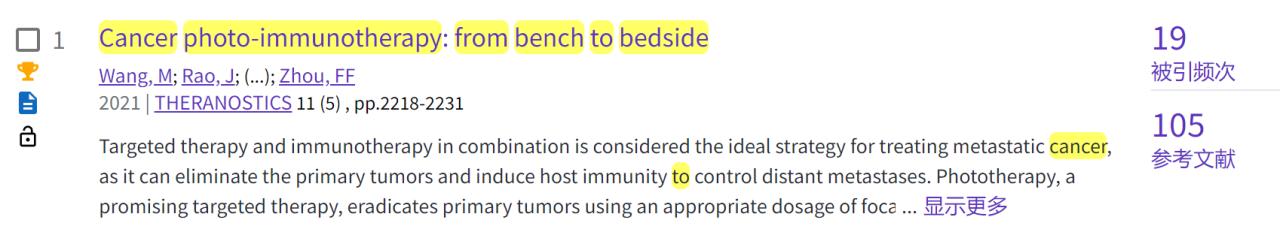 为第一单位,周非凡教授为通讯作者, 2021年1月发表的学术论文“Cancer photo-immunotherapy: from bench to bedside”成功入选全球前1% ESI高被引论文。该论文在国际顶级(Top)期刊《Theranostics》(IF=11.556,中科院分区医学1区)发表。