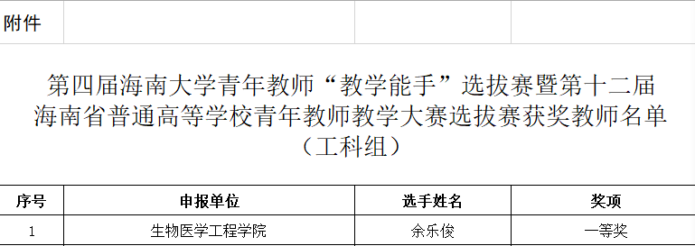 近日,成人网 公布了第四届成人网 青年教师“教学能手”选拔赛暨第十二届海南省普通高等学校青年教师大赛选拔赛的选拔结果,我院余乐俊老师荣获工科组一等奖,并将代表成人网 参加第十二届海南省普通高等学校青年教师教学大赛。成人网 在此次比赛中获得优秀组织奖。