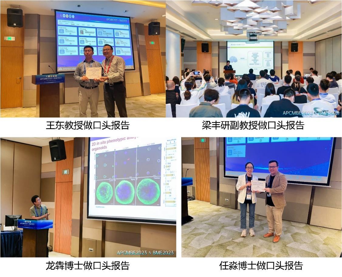 刘谦院长主持了“生物信息与数字化健康前沿技术创新论坛”主题Panel讨论,并担任“青年论坛—IFMBE Young Investigator Competition”评委。付玲教授在教育论坛做了“中国BME教育发展”的特邀报告,并主持了“新工科教育专题”主题Panel讨论。柔性人才李鹏程教授主持了“生物医学光子学”分会场的阶段性报告。