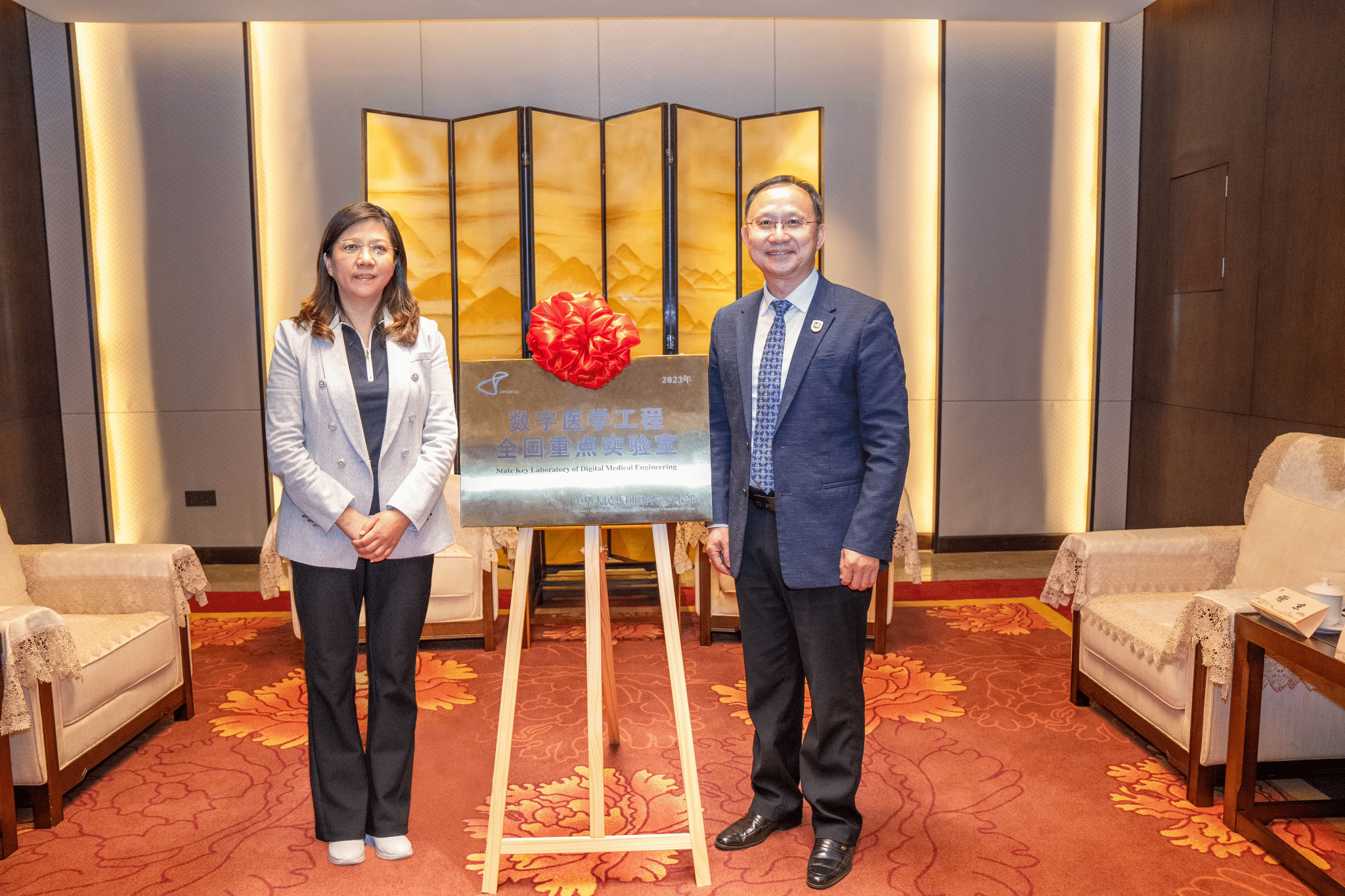 校长、中国科学院院士骆清铭为两校共建的“数字医学工程全国重点实验室”揭牌。东南大学党委常委、常务副校长吴刚、成人网