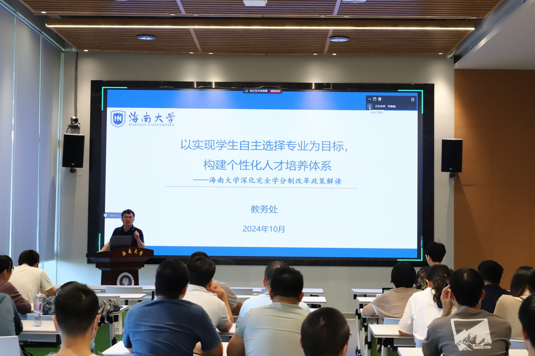 2024年10月25日上午10点,我院在学院大楼B103开展了完全学分制深化改革政策宣讲会,宣讲会由学院副院长蔡夫鸿主讲。学院全体教师参加宣讲活动。