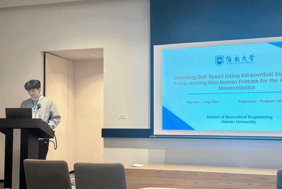 我院多名师生参加了本次大会。其中,梁丰研副教授受邀参加。我院研究生陈龙在Neurorobotics分会场进行了题目为《Decoding Gait Speed Using Intracortical Signals in a Freely-moving Non-human Primate for the Control of Neurorobotics》的报告。