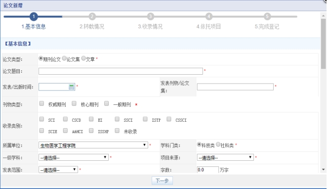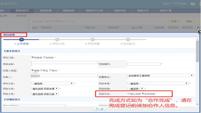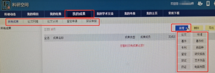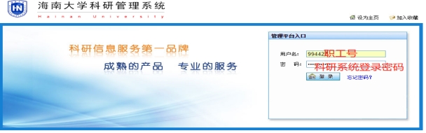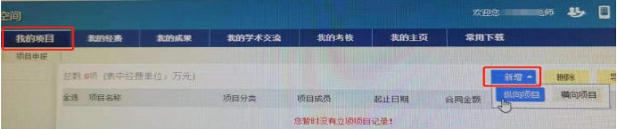 科研管理系统”→ 输入职工号与密码 → 进入“科研空间”录入项目、经费、成果、论文、专利等。