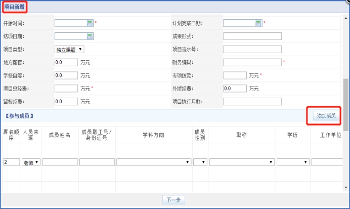 (1)新增项目: