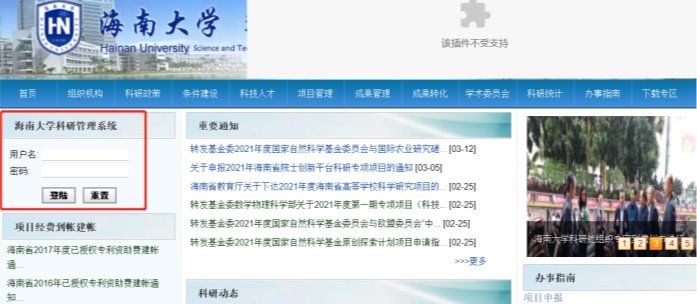 登录校科研系统操作流程如下: