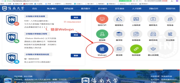 主页, 用Webvpn登录,具体操作如下: