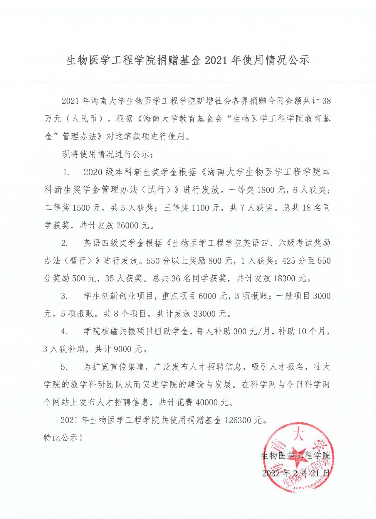 成人网 捐赠基金2021年使用情况公示
