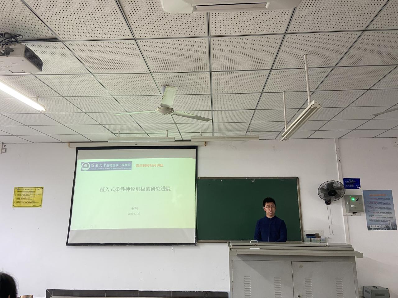 青年教师讲座(五)——《植入式柔性神经电极的研究进展》在5-302举行。讲座由王东副研究员主讲,我院全体本科生、研究生共80余人参加讲座。讲座由副院长蔡夫鸿主持。