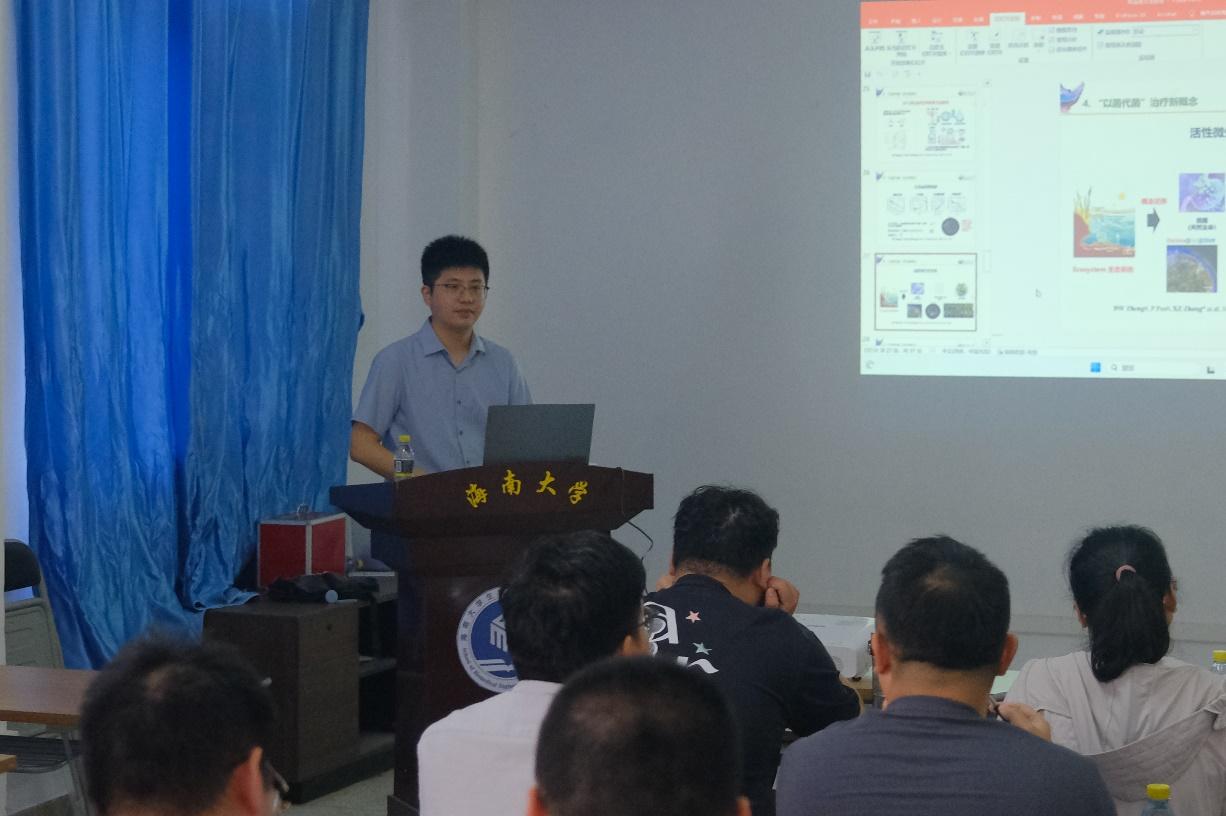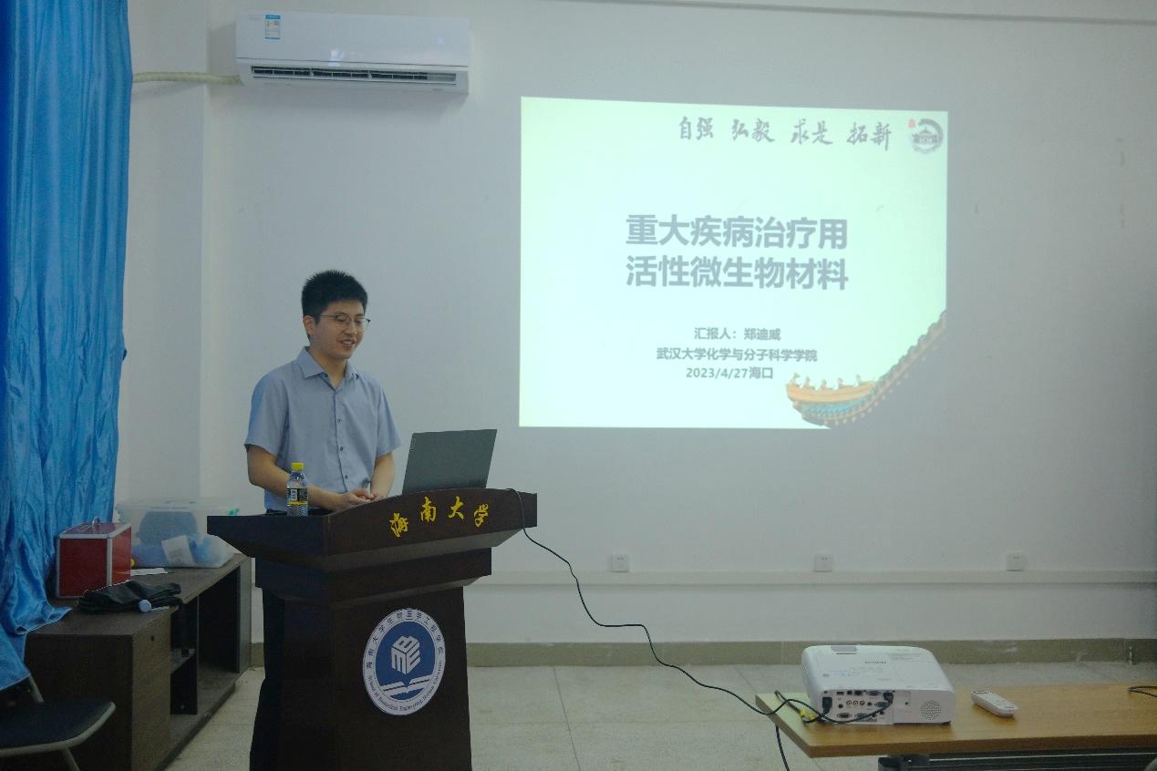 学者论坛第四期在学院召开。武汉大学化学与分子科学学院特聘副研究员郑迪威为学院师生开展题为《重大疾病治疗用活性微生物材料》的专题讲座。