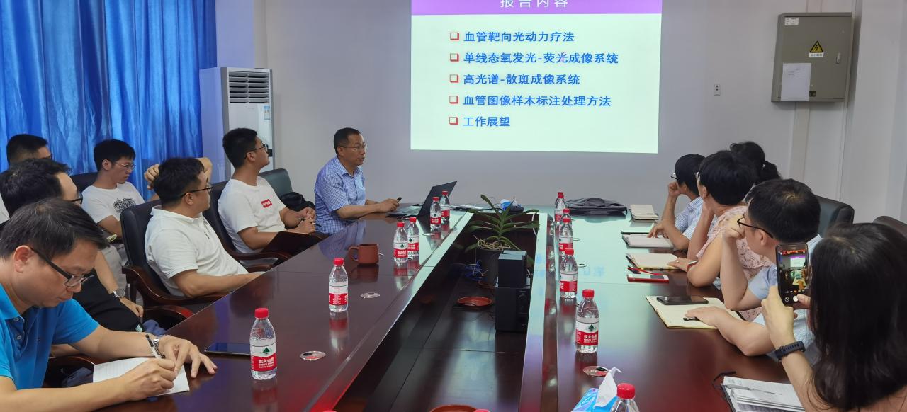 6月7下午,福建师范大学李步洪教授受邀来我院做学术交流,学术报告会由刘谦院长主持。首先李教授做了《多模光学成像技术定量监测光动力血管损伤》的学术报告,报告后我院师生和李教授就报告内容进行充分的交流。