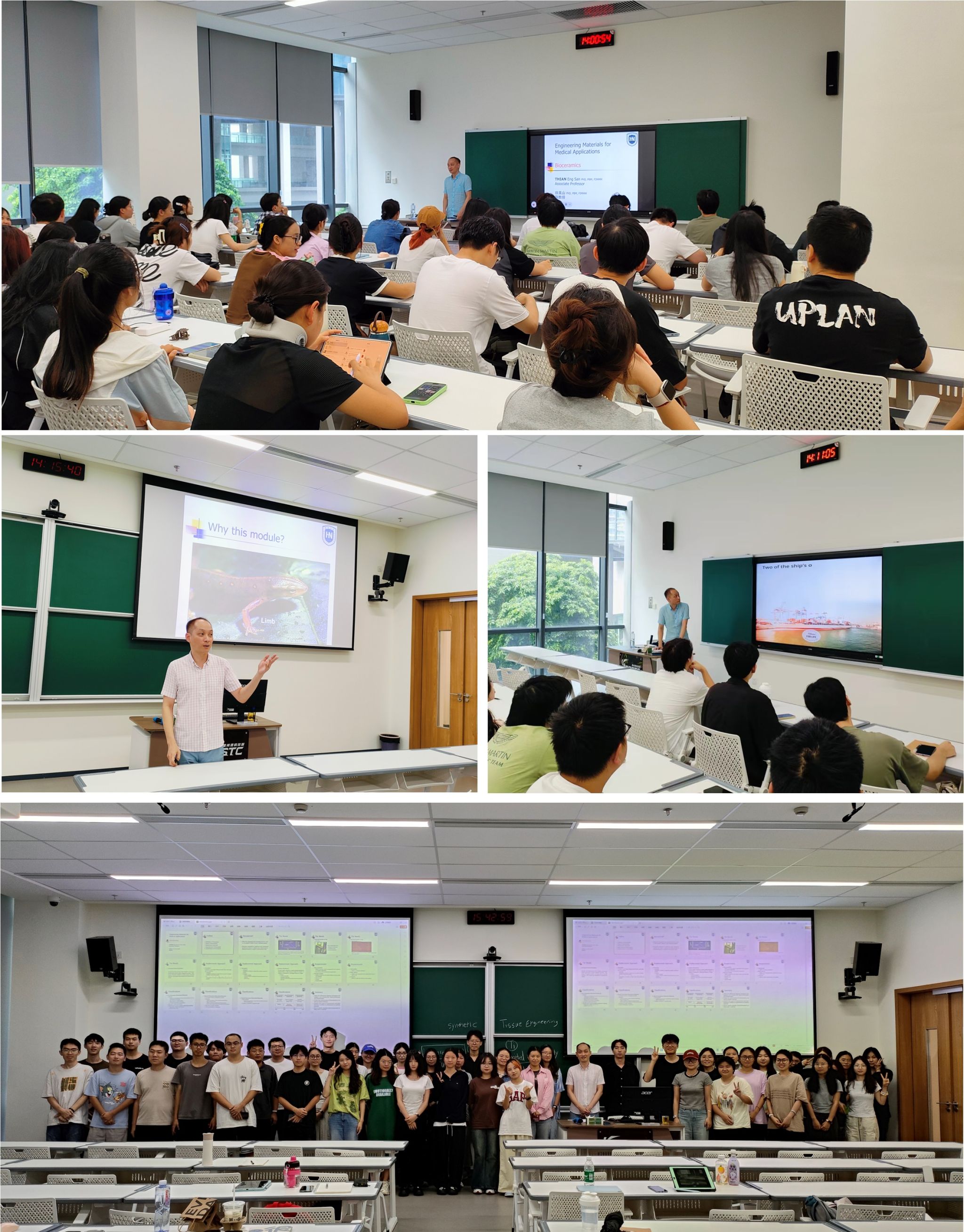 本次来访期间,Thian教授给学院2024级研究生讲授了4个场次的学术讲座,主题涵盖生物医用材料前沿进展、生物医用材料及器件评价方法、材料与组织界面相互作用研究、研究方法与科技论文写作等方面,受到学生们的热烈评价和反馈。来访期间,Thian教授还就生物医学材料、柔性传感、神经电极等方面的科研项目合作、学术互访、学生联合培养、科技成果转化孵化等议题与学院相关团队师生进行了深入研讨。