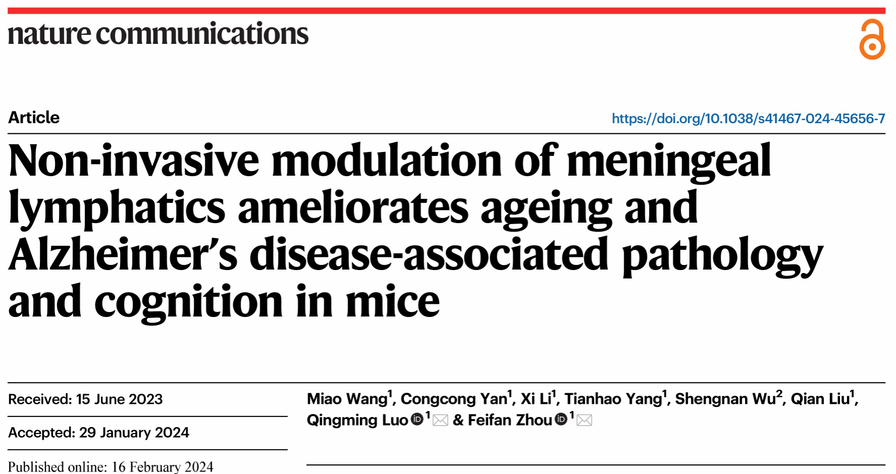 2024年2月16日,《Nature Communications》在线发表(Nat. Commun.15, 1453, 2024)成人网