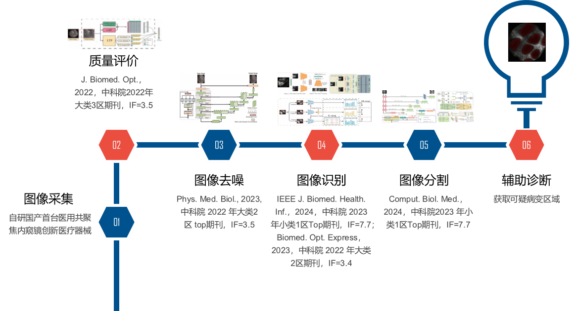 这一系列研究进展标志着共聚焦内窥镜成像技术在临床应用上的一大飞跃。研究团队不仅推进了技术层面的创新,还确保了这些先进技术能够转化为临床实践中的实用工具,为医生提供了更准确和高效的诊断支持。目前,通过整合这些研究成果,团队计划与医疗机构合作开发部署一套全面的共聚焦内窥镜辅助诊断系统的医学大模型,来解决该技术在临床应用中遇到的各种挑战。这些努力将加速基础研究成果的实际应用转化,为患者带来更优质的治疗方案和结果,展现了科研工作在提高医疗服务质量方面的巨大价值和潜力。