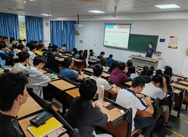 围绕生物医学前沿开展本科生冬季小学期课程。2023年11月25日,国家杰出青年基金获得者、上海市免疫学研究所副所长、分子免疫学课题组组长李斌教授,为学院2022级本科生讲授“免疫学和免疫疗法”的冬季小学期专题课程。李斌教授从免疫学的发展史循序渐进,结合国际前沿的研究成果和进展,深入浅出地讲授了免疫疗法在疾病治疗领域中的应用前景。授课现场气氛活跃,同学们积极提问,与李斌教授互动交流。